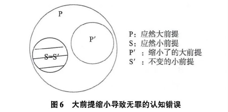 个别案件的辩方,在待评价事实小前提不变的情况下,通过限缩法律规范大前提,割裂大小前提的关系(图6),此类问题在样本中占比5%,涉及指导性案例11号、13号。