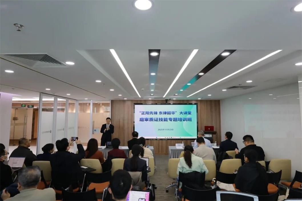 2025年11月23日下午,北京市东城区律师协会“正阳先锋 东律韶华”大讲堂——“庭审质证技能”专题培训班,在北京尚权律师事务所成功举办,来自东城区的近50名律师参与了本次培训。