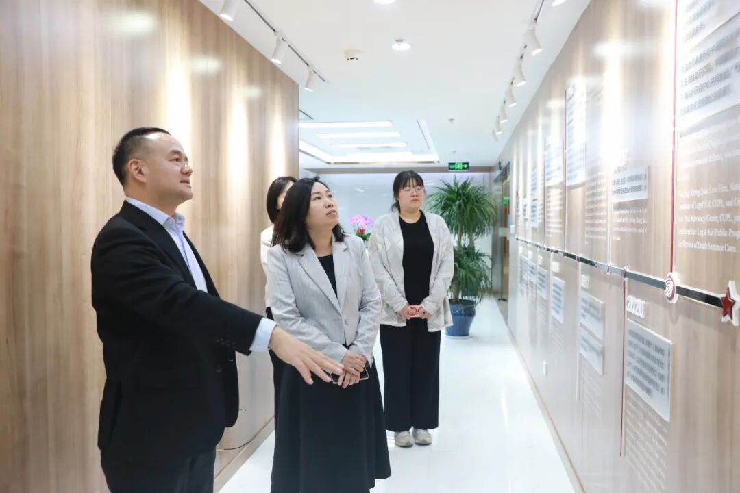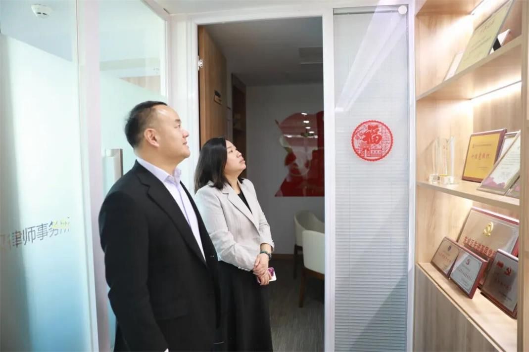 在毛立新主任的陪同下,韩卫杰副局长一行实地参观了尚权所的模拟法庭、党建活动区、荣誉陈列区、发展历程墙以及律师办公区,对律所的专业设施、文化氛围和党建成果给予了积极评价。