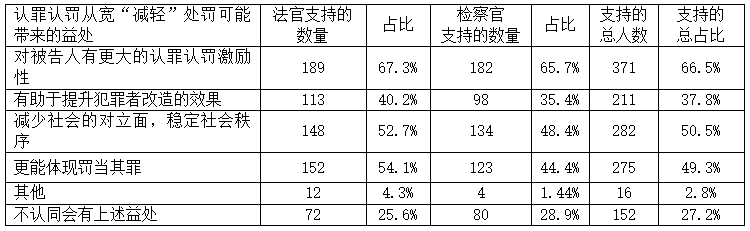表1 认罪认罚从宽“减轻处罚”益处的支持情况