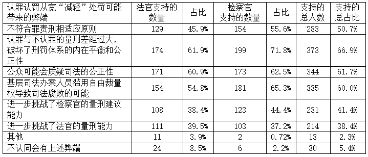 表2 认罪认罚从宽“减轻处罚”弊端的支持情况