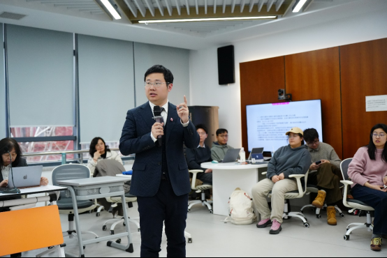 第二个环节,由王勃律师组织学生两两分组进行破冰互动,向全班师生介绍对方。破冰环节不仅营造了活跃的课堂氛围,拉近了同学之间的距离,还锻炼了同学们的概括总结能力与表达能力。