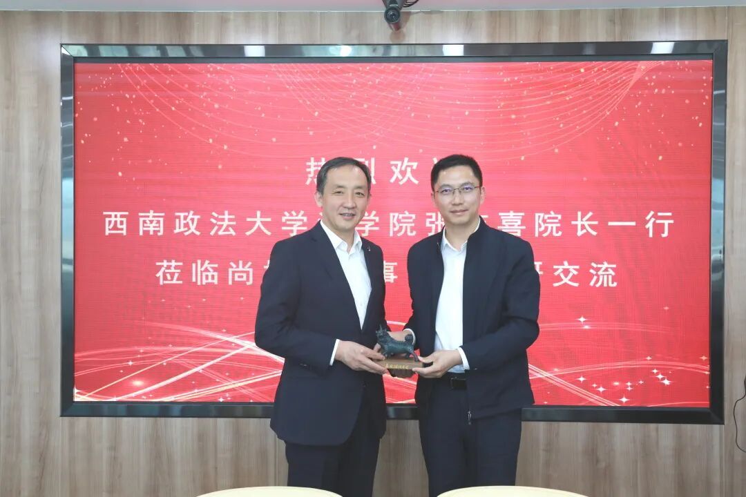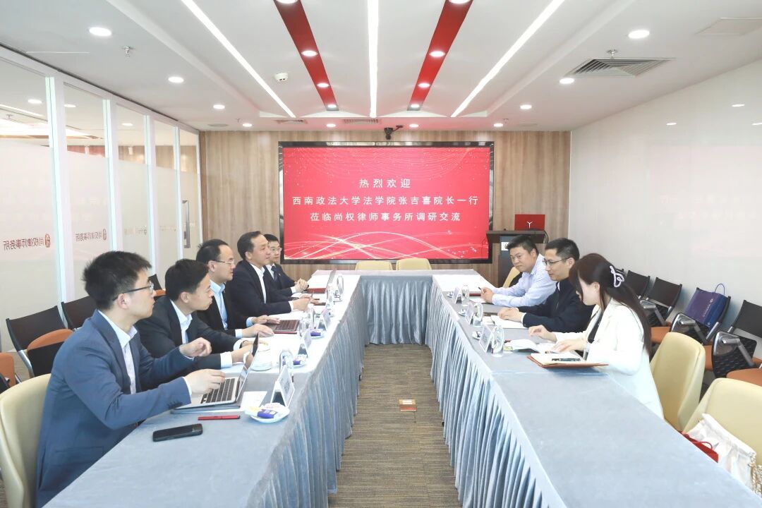 2026年4月20日下午,西南政法大学法学院院长张吉喜教授、刑法教研室主任贾健教授及法学院团委书记吴艾玲老师,莅临尚权所调研交流。尚权律师事务所名誉主任毛立新、主任高文龙、副主任张旭华及合伙人胡佼松、王勃参与了接待。